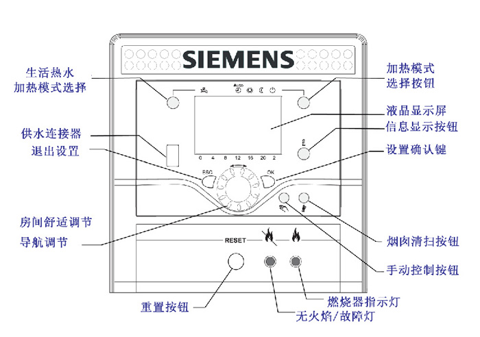 13.生活熱水感應器:如生活熱水水溫超過55度,感應器阻止鍋爐運行(必須安裝生活熱水儲罐)。